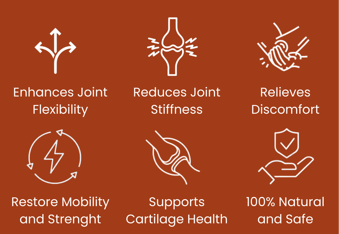 Together, these powerful nutrients work synergistically to support joint health, improve flexibility, and promote comfortable, fluid movement throughout the day—helping your body stay strong, mobile, and resilient at any age.
